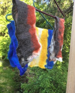 Along with the sculpture comes a round of trying 2D felting. I’m enjoying it, but it’s more challenging than I originally thought. Of course it really helps to actually plan everything out before one starts.