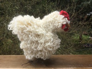 One duck with feet, one without. More work is needed to refine their heads before they are covered in colored wool.The crazy loopy fluffy chicken. I won’t be attempting this method again!
