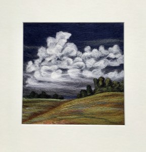 The felting zone has seen a little activity. I did manage to get a landscape created twice. The below image was my second round. Clouds are very interesting to work on.