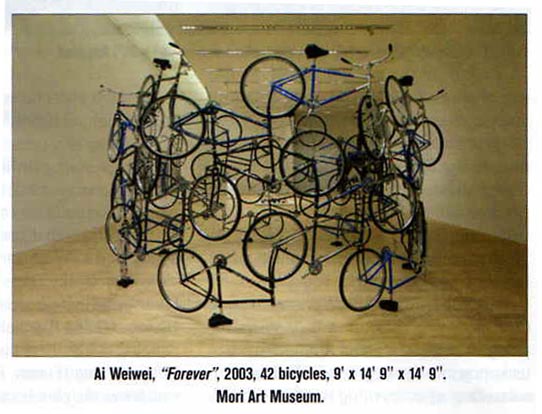 If you’re in Tokyo, the Mori Art Museum is featuring Chinese artist Ai Weiwei’s sculpture from the past 15 years. I ran across the review in ArtNews magazine. Thought one person who reads this blog might make it up to the 53rd floor to see the show, if he has time.