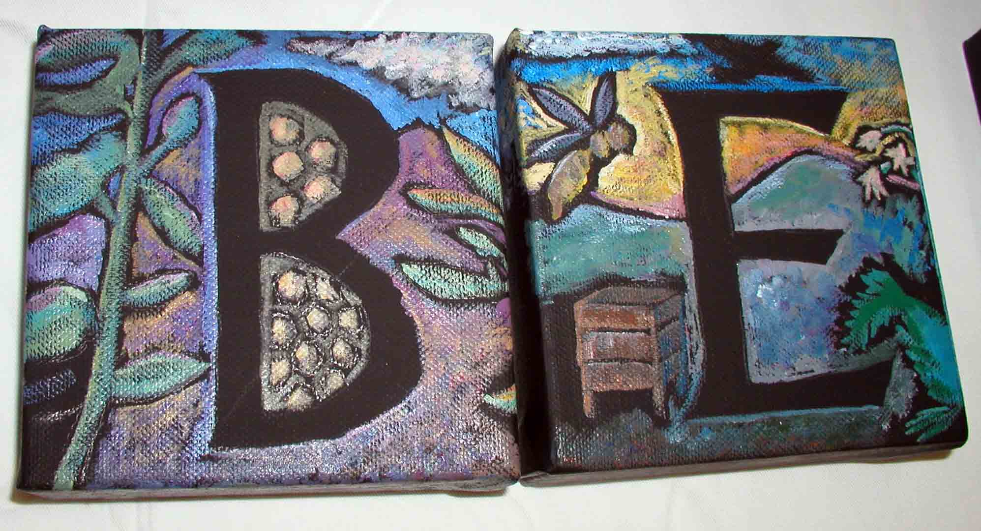 My 3 letter word became BEE. Acrylic paint on 5″x5″ canvas.