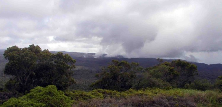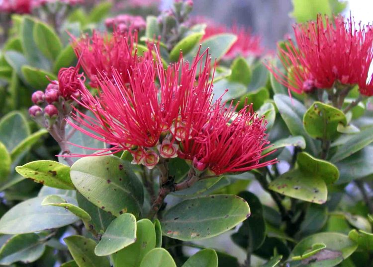 The Ohi’a lehua (Metrosideros polymorpha) is one of the taller flowering trees in this area. Ohi’a trees were used in many Hawaiian traditions ranging from leis, wood carving & house construction. Their elegant red flowers attract not only honey bees but the beautiful endemic ‘Apapane bird. I felt fortunate to witness several that day moving through the trees. Apapane’s are red just like Ohi’a flowers.