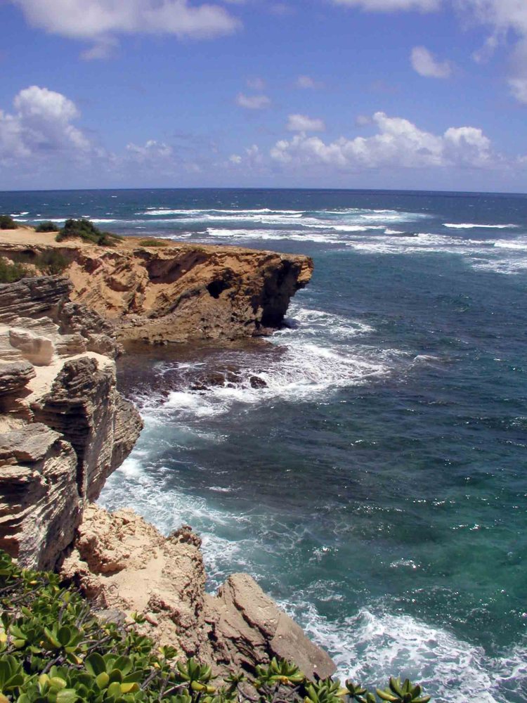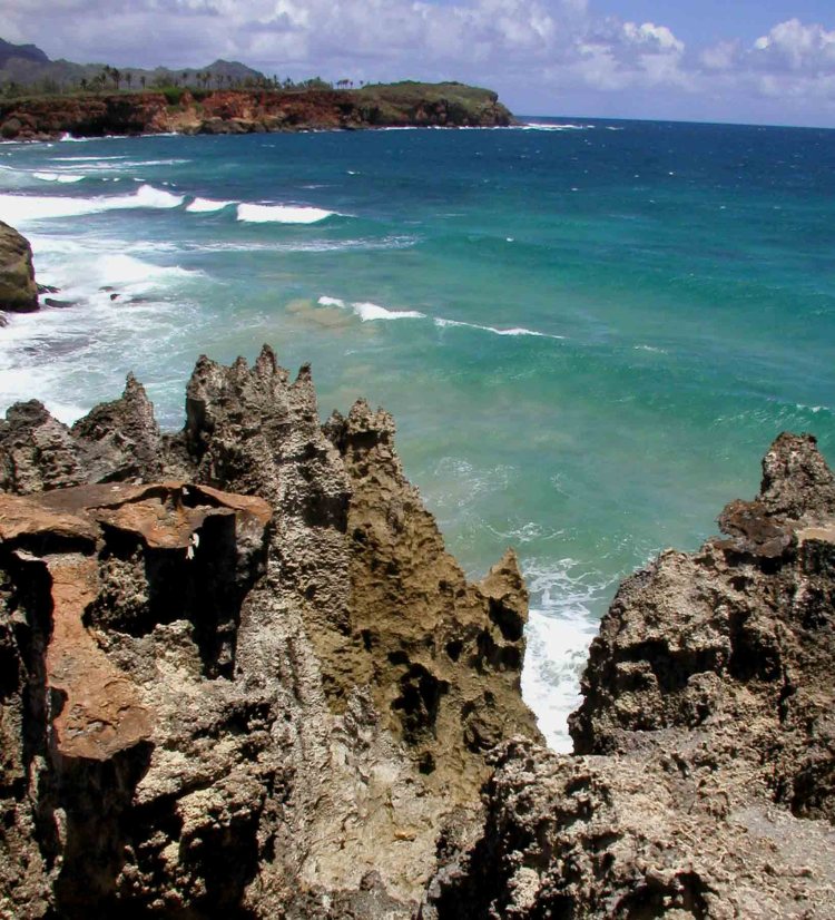 Along the southern edge of Kauai is a 2+ mile trail that travels along the shoreline to a beach. The Maha’ulepu coast trail starts next to the Hyatt Regency Resort at Shipwreck beach and heads east. It snakes along the shoreline over Makawehi bluff, traverses part of the golf course, through an ancient heiau, over Punahoa Pt. to Maha’ulepu Beach. I found after making the trip I took very few photos along the way. Hopefully Mike & Shannon have more.