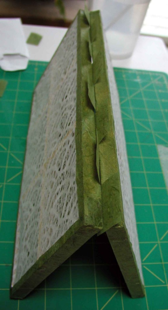 I started on the green side and attached paper hinges.  Notice how it alternates sides.