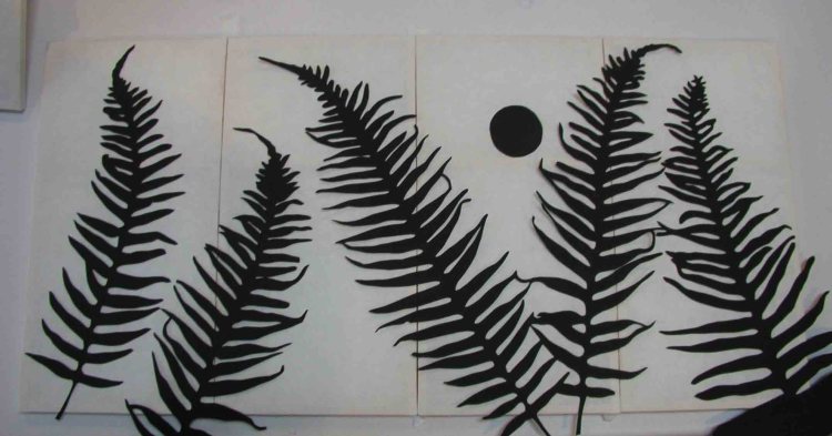 Layout of paper ferns on panels.