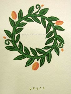 Completed image: Peace-Quat Wreath (as in kumquats). A little goofy but it worked.