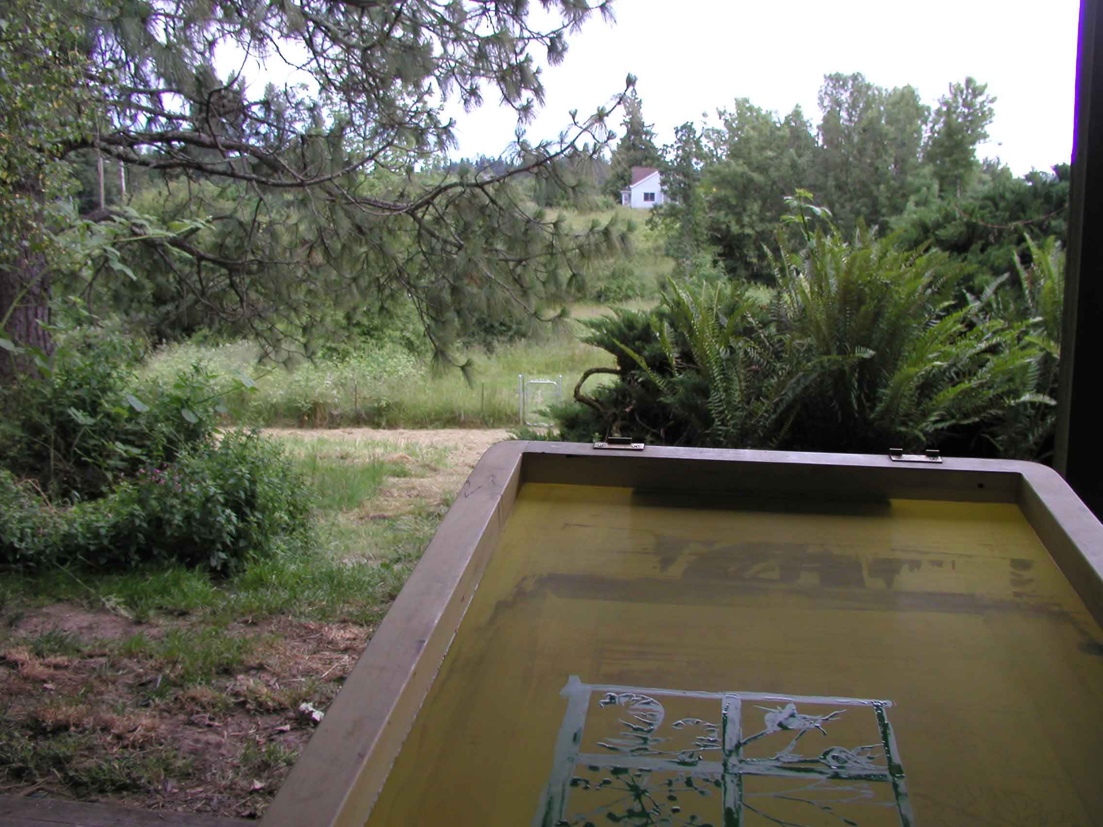 How I begin- Step One: choose 9 images from my silhouette collection that might make interesting cards…. and draw them on a screen. Step 2: fill in the line drawings with drawing fluid. See the below images for the progression.