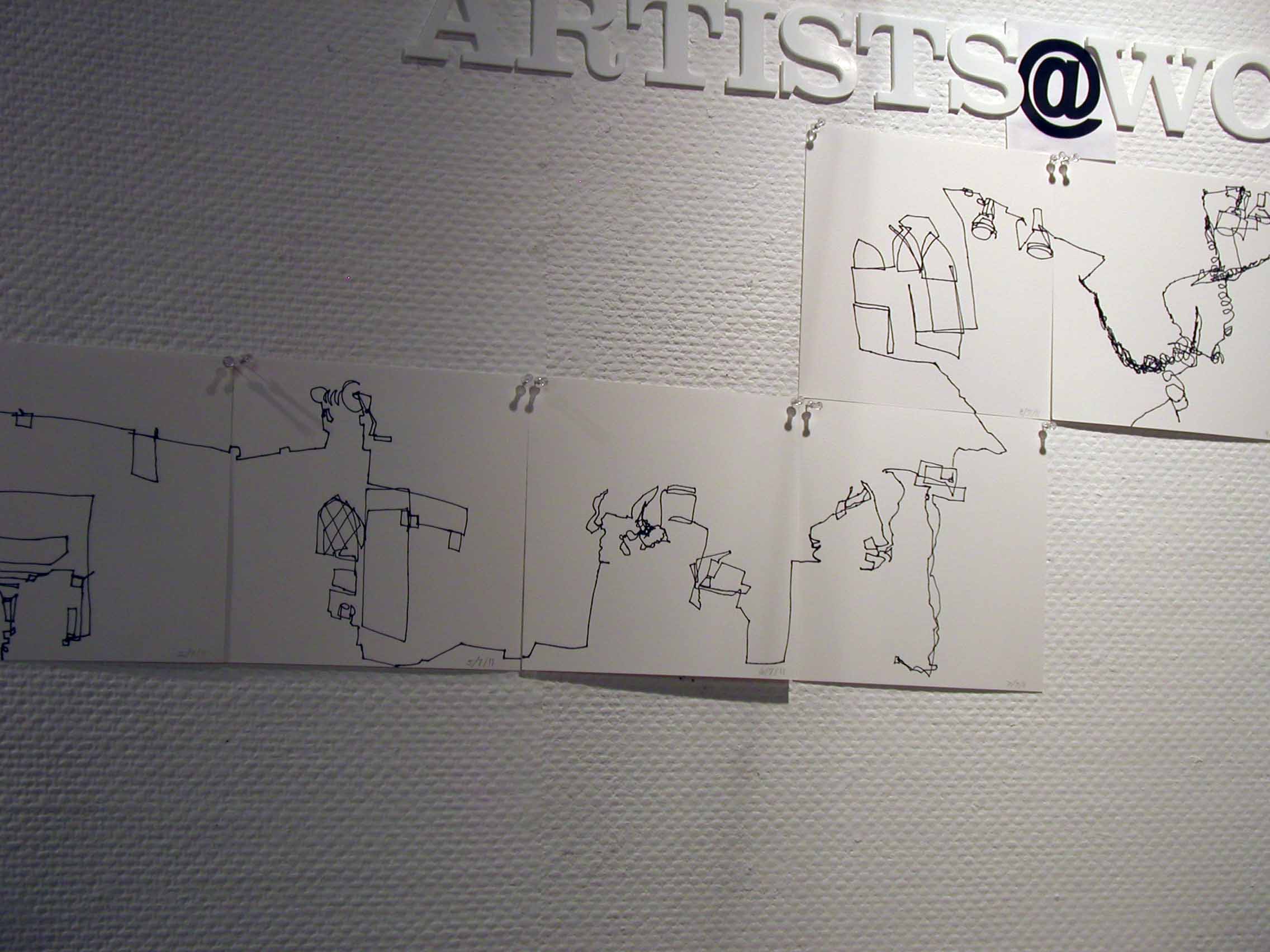 Her blind drawings are really taking form. She draws a different section of the gallery space each day.