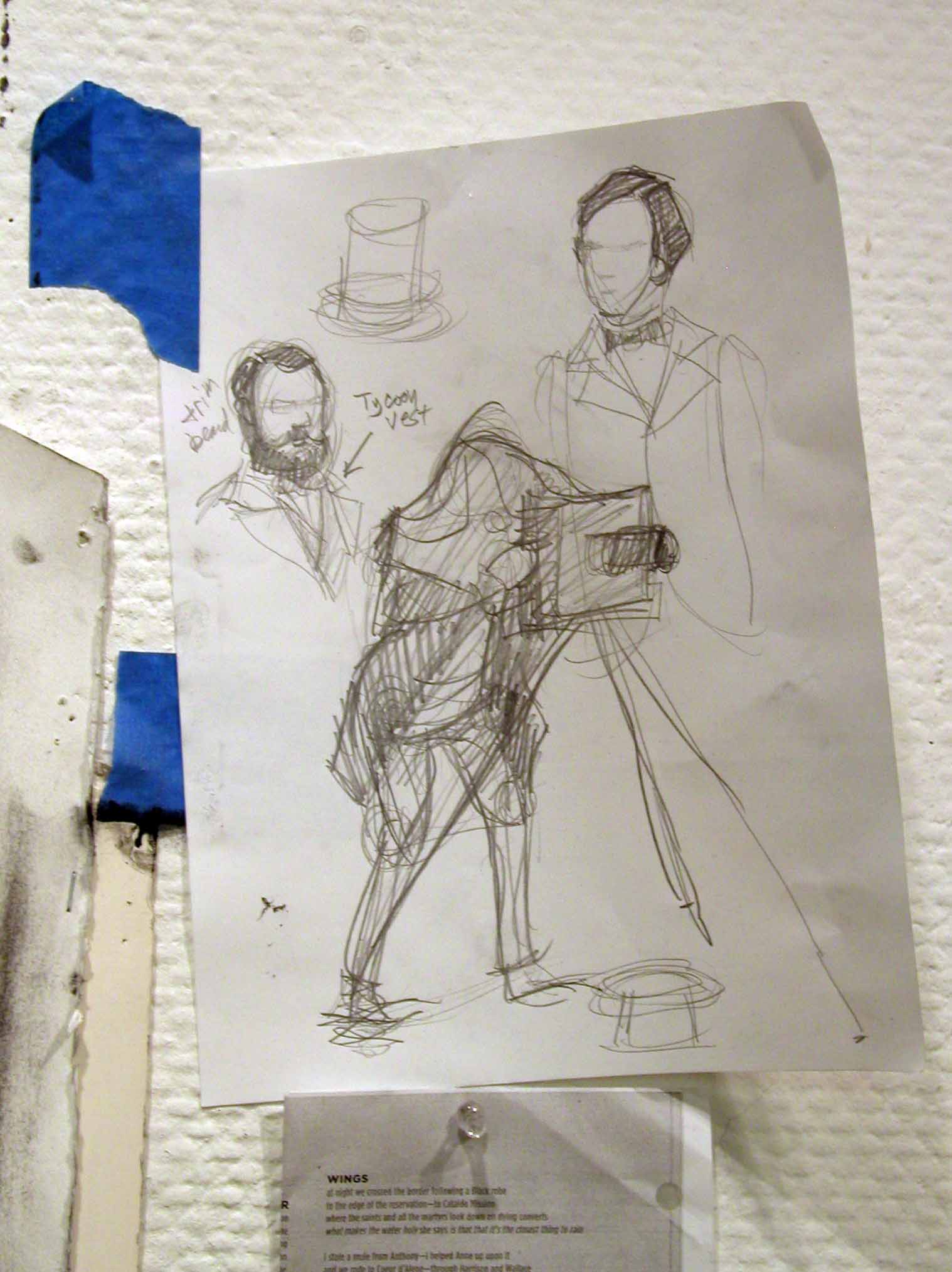 First off, we had a reporter come visit our group today and interview each artist. I couldn’t pass the chance to get a candid photo of him photographing Julia! Think the article will come out next week. Maybe in the Entertainer? Not certain.