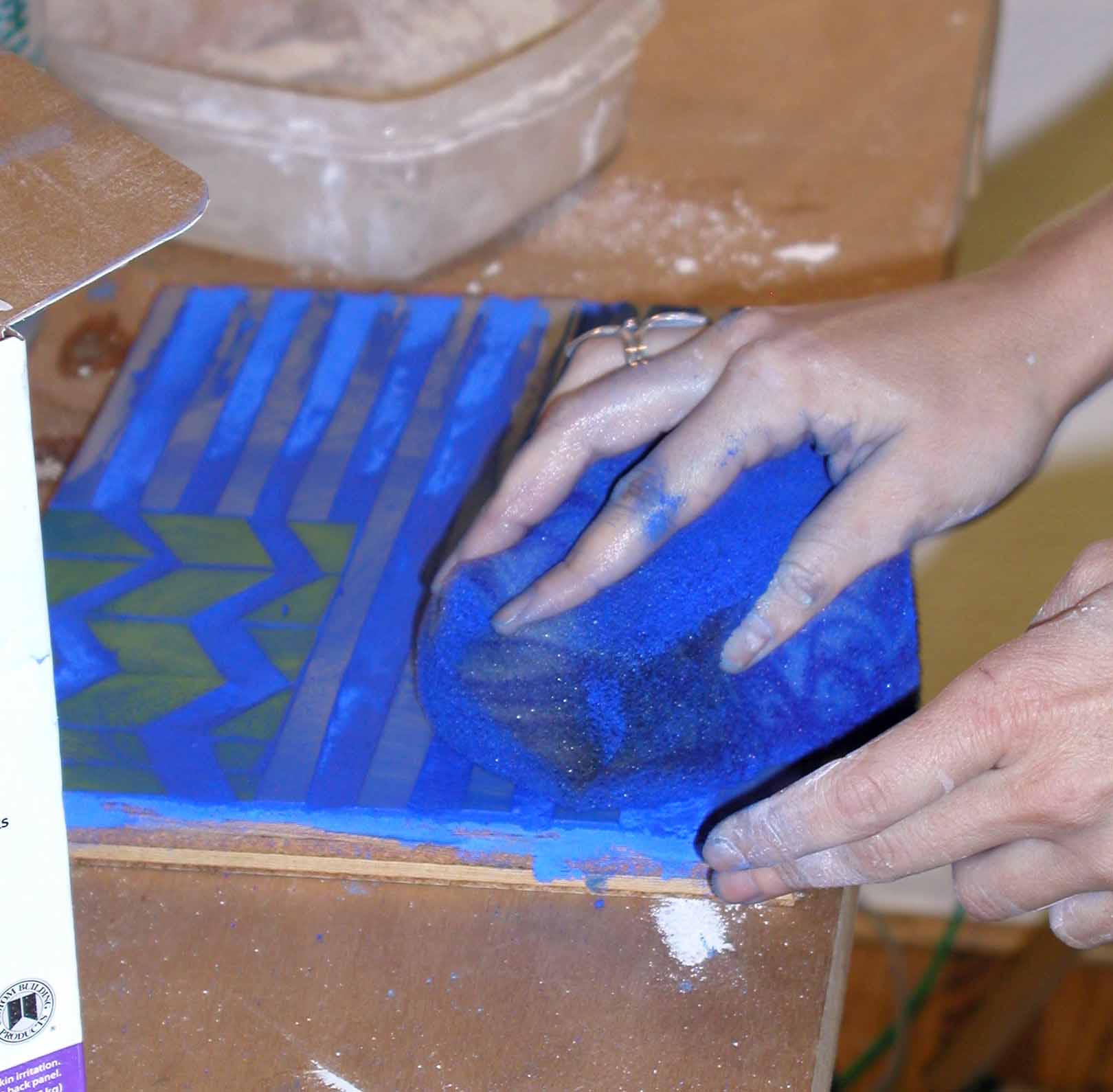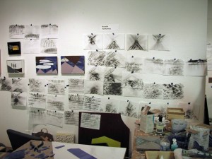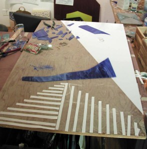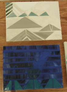 I like how people’s walls have changed over the weeks. Kendal has been doing charcoal rubbings of her glass before grouting.