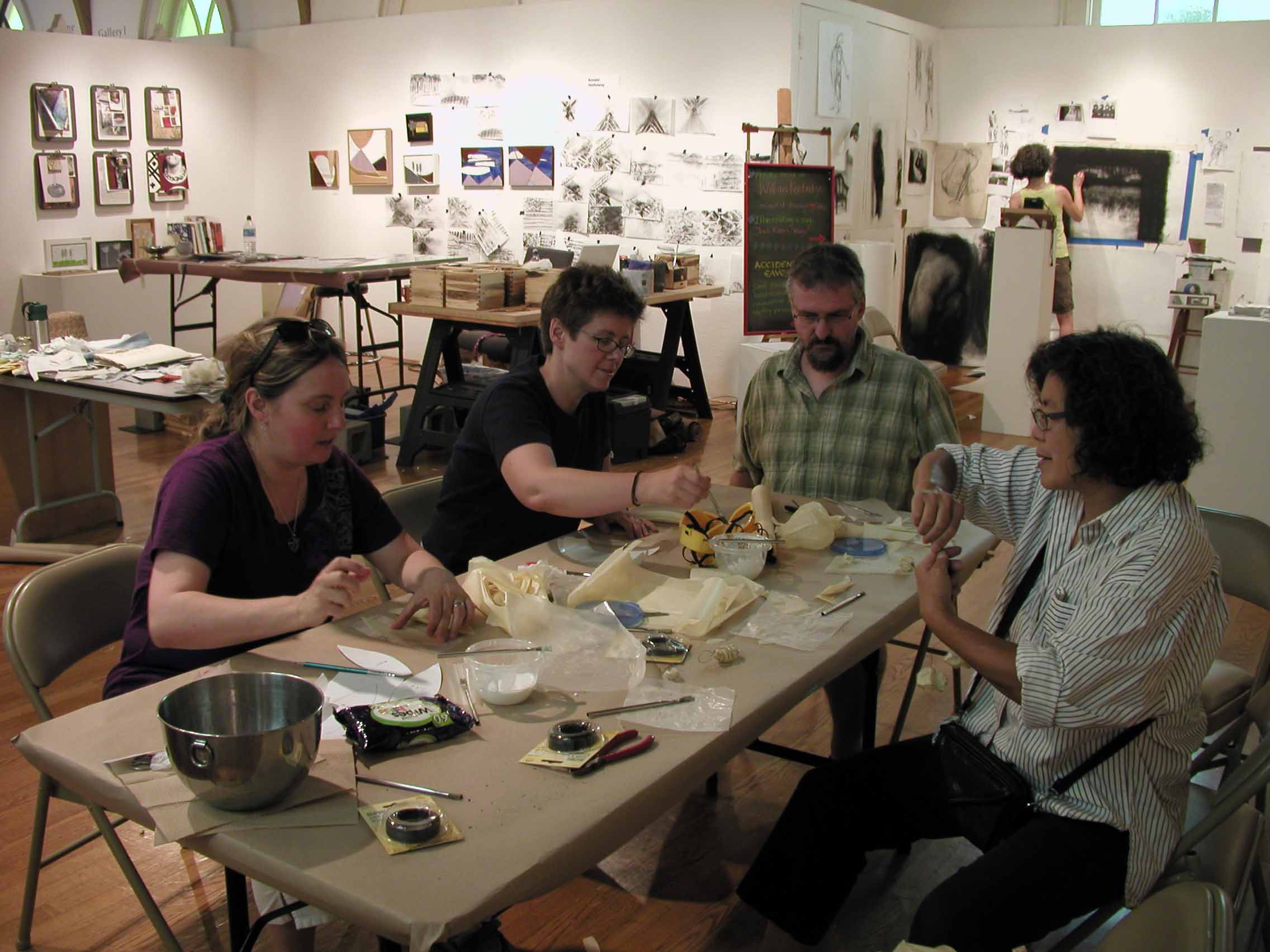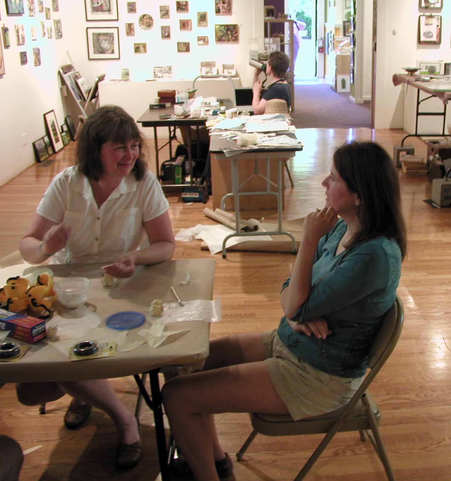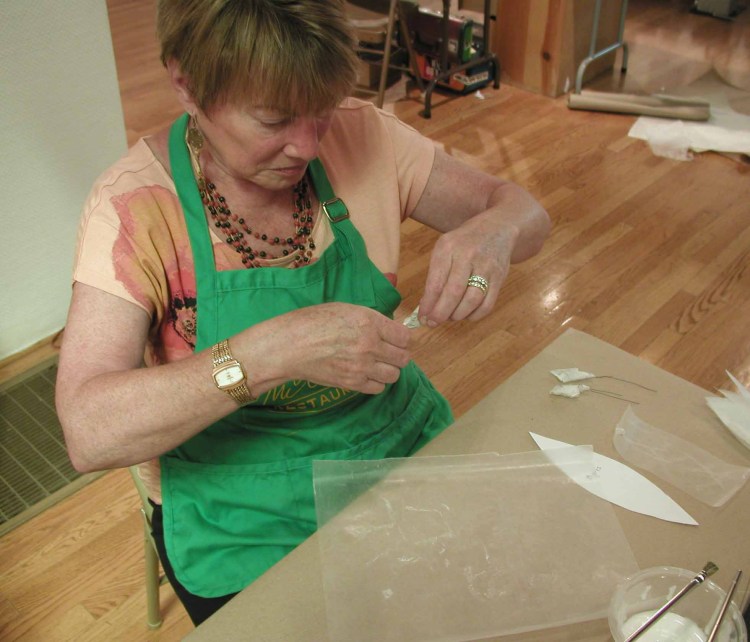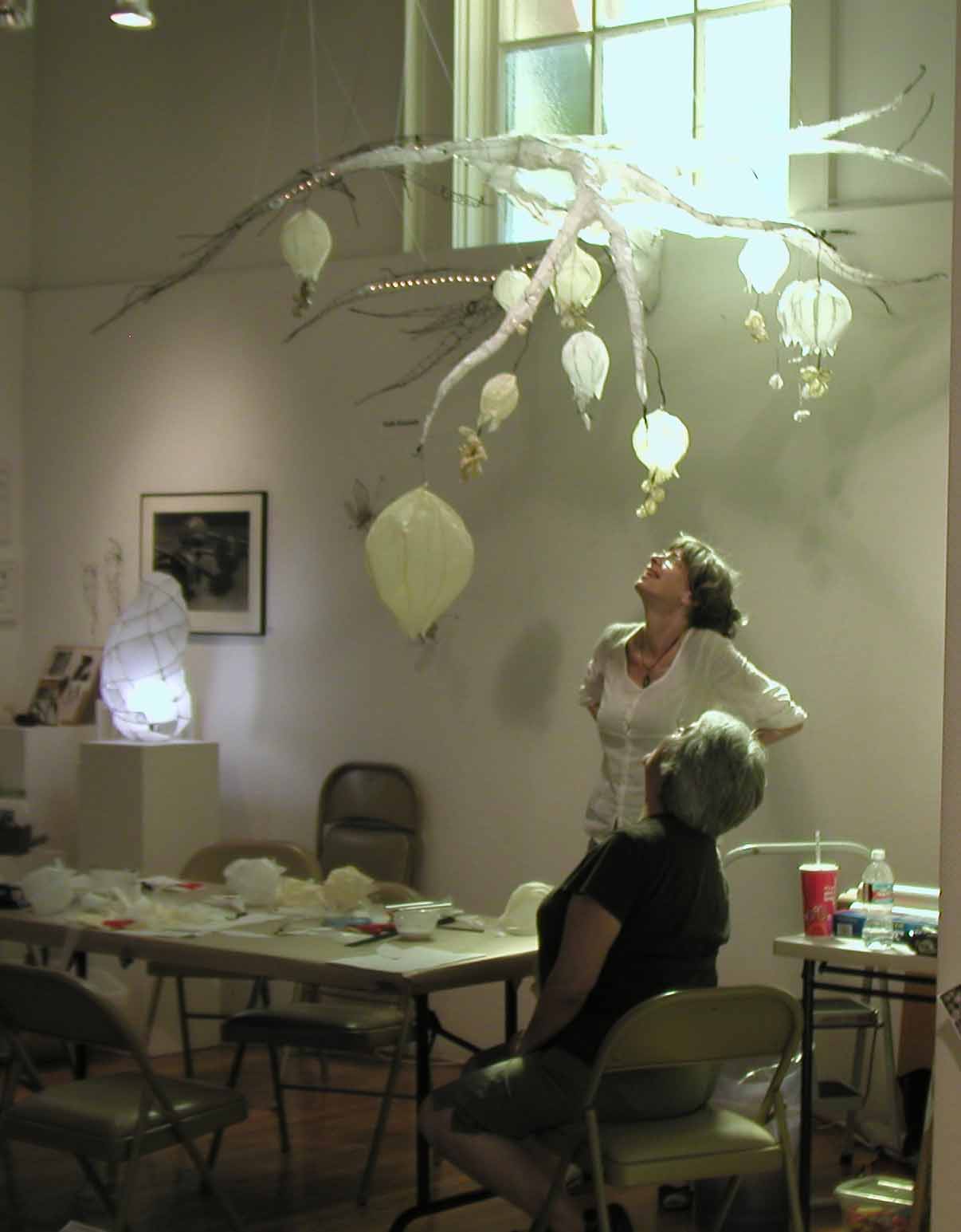 Today was the last Saturday of our exhibit and the Seed Pod workshop. Not knowing how many people would attend the workshop or how to deal with people coming in at different times was hard, but my two helpers did an excellent job! A total of 15 people came to play in paper, including the assistants. Whew! There were possibly a few more who would have liked to participate but table space was limited. I’m sorry we couldn’t fit George & Nick into the group! Below are the images from the workshop.
