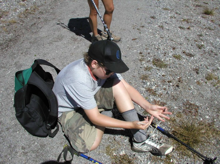 Checking the feet for blisters.
