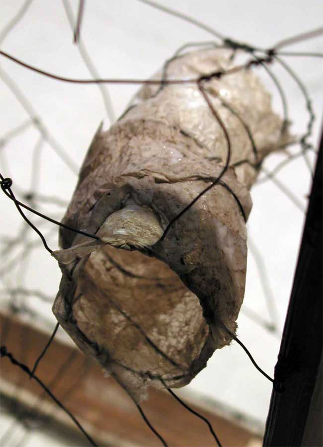 Covering a tube. Kind of reminds me of cow trachea or a caddis fly during their water stage.