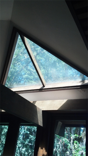 When you look up, you see one of the 4 skylights. Yes, that is a pyramid form that vaults above the ceiling. My father designed and built the house before I was born.