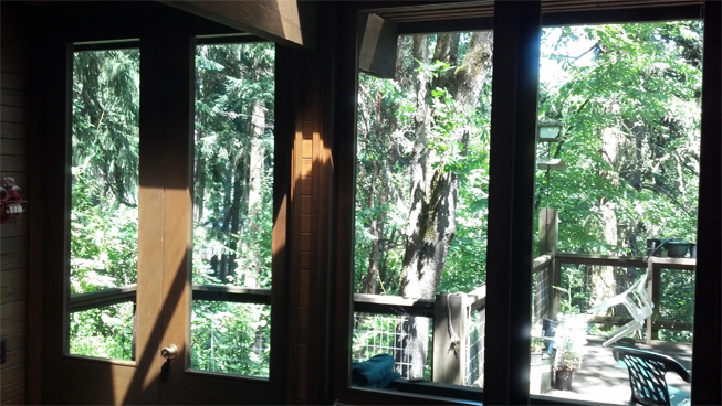 This is the view looking out onto the back deck from the dining room. Boy, what a bright day! I’m still learning how to navigate the new phone for taking photos.