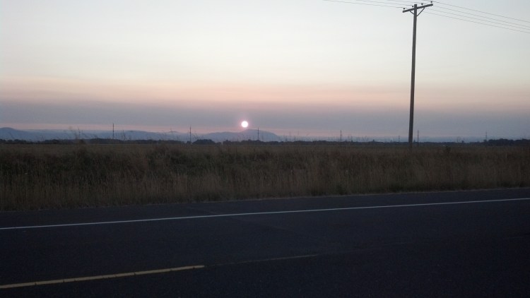 Sun over Mary’s Peak. The cell phone just doesn’t capture the colors from last night. It was pretty spectacular. The shot was taken on Hwy 99E near Halsey. I think. I can’t really remember. It did remind me of sunset/sunrise in India. A time so long ago.