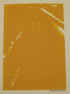 Here are the first two colors of a reduction screen print. I’m not going to say what the subject happens to be. You’ll just have to wait to find out. Hopefully it actually turns out ok… if not, you might not see the rest of it! πŸ™‚