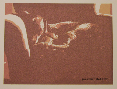 So, what’s happening? The ink doesn’t want to release from the screen. It has kind of an alligator crackle appearance when you look at it closely. Maybe it’s all to do with the extender being too old. It certainly doesn’t flow well at all! I think it’s time to visit the art shop. I have to make a trip to Eugene anyway…. Might as well stop by Oregon Art supply and see what they have.