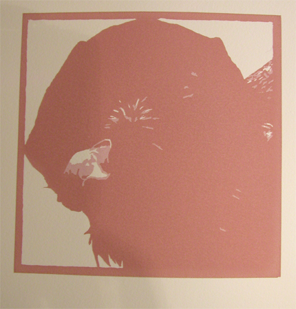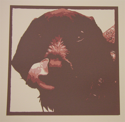 Monday was a good printing day.  I managed to pop out 3 colors on the new Moby Lick image. Sunday I started with pink. Monday started with a peachy/burnt orange color then moved to reddish brown and finally a chocolate brown.