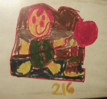 An odd thing about cleaning out the home you grew up in is discovering art work produced by all 4 siblings. Sometimes you don’t even realize you produced it until older siblings step in and say,”yes, you made that”. In my dad’s studio were several works created by various small children over the years. My brother Tom had created a fabulous watercolor horse, several works were represented by various grandchildren and then the mystery work that apparently was created by me. There was some story about looking at a birthday card and drawing the image with felt markers. My dad framed it and had it hanging in the basement workspace and then eventually it moved into the studio upstairs when he took over an empty bedroom.