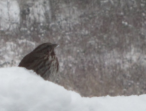One of the many Song Sparrows visiting the feeders. We also have lots of Fox sparrows, nuthatches, chickadee, juncos… and several other species visiting today.