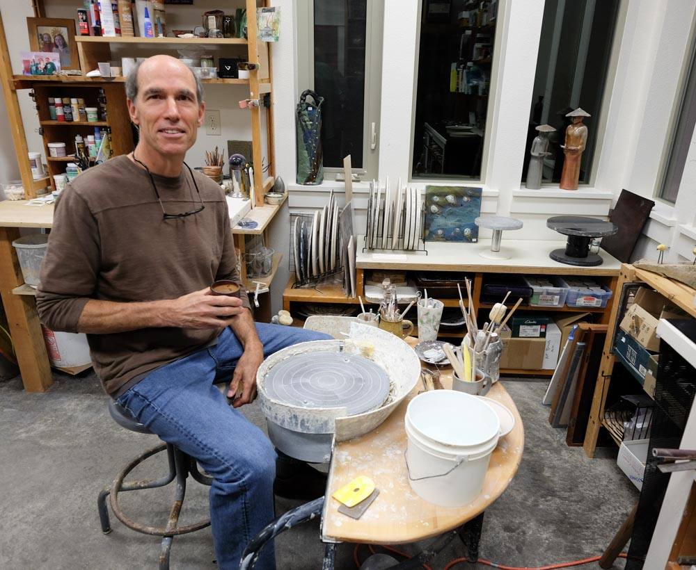 At Lee Kitzman’s Studio. Lee talking about some of his recent colors while sitting at his wheel.