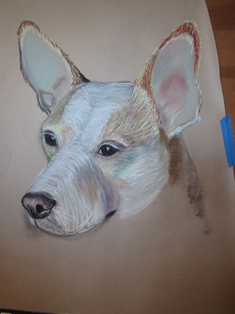 Ears are one of those areas I really don’t feel comfortable drawing. If a dog’s ears flop over, then you don’t have to deal with any of the inner ear structure. Maybe that’s why I’ve avoided dogs with upright ears until this point. I’ll work through it slowly, little bit by little bit….