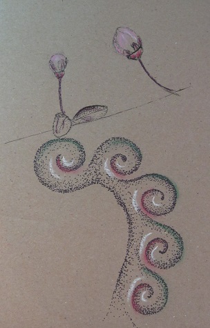 The above doodle was created on brown builders paper. More stippling fun with a touch of color.