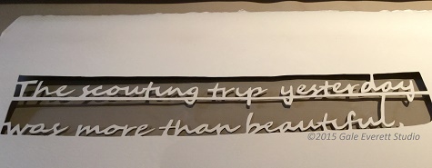 As I work through the beginning part of the forest rot project, I want to feel a connection back to my g-grandfather’s experience: walking through the woods, encountering sights never seen by the encroaching population. I want to incorporate a portion of him into this project, even though he was a horrible man who eventually left my g-grandmother and child. I’m planning on cutting out the full quote, but not necessarily in one full run. Possibly short sections that are placed through the mixture of other cut paper. But time will tell if it really becomes part of the project. One thing I’ve determined, cutting words is very difficult on the hands.