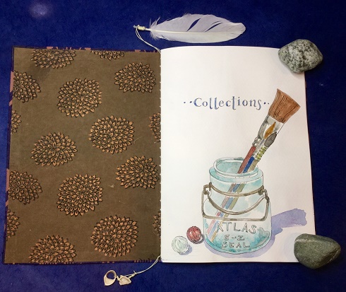 The Collections collaboration book is finally ready to leave the desk! A feeling of relief washed over me as I completed the last portion of the book. It was started by Minnesota artist Cathe Jacobi. You can check out her blog  Amaryllislog HERE. Her book was the first to arrive and I now have a taste of adding work into the collaboration. Two more books to go!