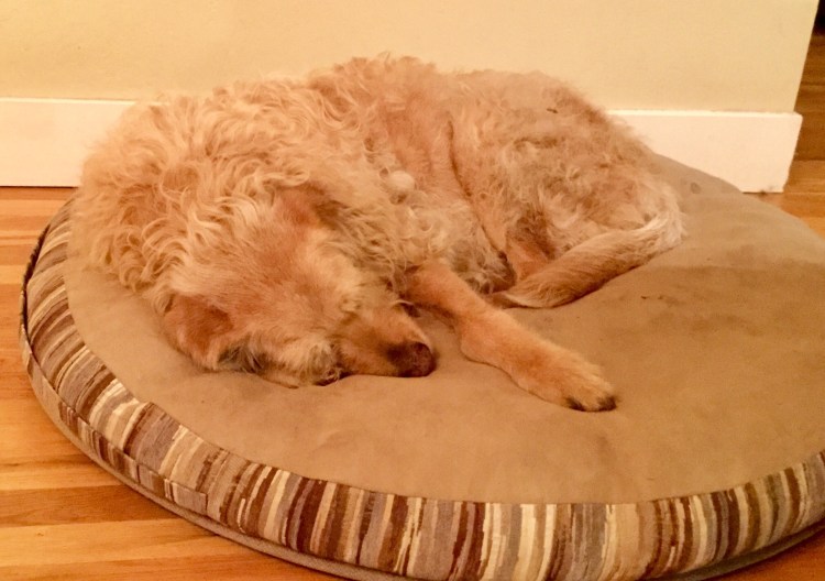 My friend is trekking in Nepal while I stay with the ailing old dogs. You would probably recognize the two Doodles. Reggie and Zeek lived with us for 19 months several years ago. Reggie is currently 14 and has a leg cancer. Zeek , 12 years, has heart disease. Infact, Zeek has been the sickest out of the two since arriving. I’ll get back to him in a moment…