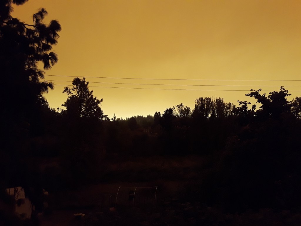 I remember this kind of sky and ash also here from two summers ago, although this seems even crazier. Stay safe. It brings back memories of being on evacuation alert, the horrible ongoing scariness.