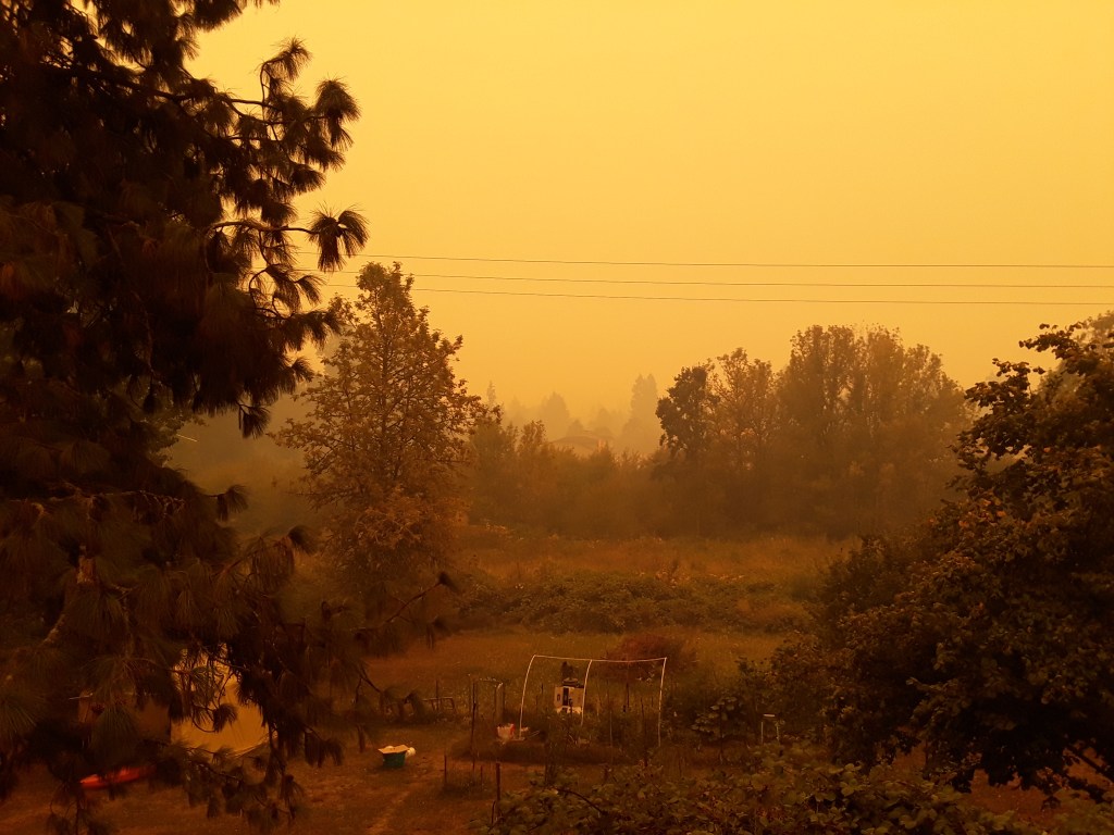 Many of you know that I live in the state of Oregon on the west coast of the United States. We have copious amounts of beautiful scenery, old growth forests (in some locations), beaches, rivers and gorgeous mountains. We also have massive wildfires burning throughout the state right now. Almost a million acres have burned in just this past week. That’s larger than the state of Rhode Island. Over 500,000 people are in level 1-3 evacuation zones due to the rapid spread. Our air is filled with smoke, not just here in the Willamette Valley, we’re talking about the entire state. This morning the air quality index for Albany was 507 (255 as of 2 pm) . My sister & brothers in Eugene woke to 544 (400 at 2 pm). At 150, air is considered very unhealthy.