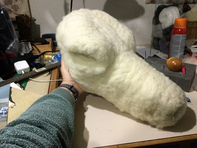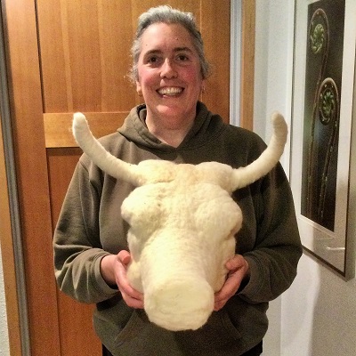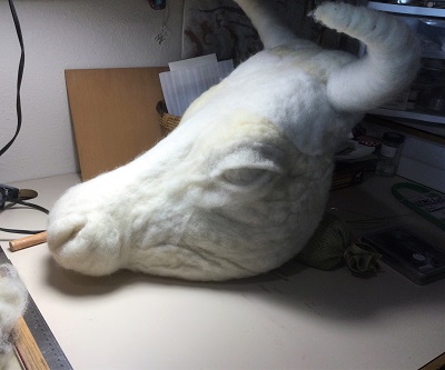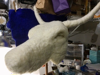 In honor of the upcoming Lunar New Year, I’ve been working on a cow/ox head sculpture. Yes, year of the ox is almost upon us. Last year I started the new tradition of creating a zodiac head just before the new year. Since felting seems to be my current muse, I jumped into this head with gusto! Below are a few images as it’s grown.