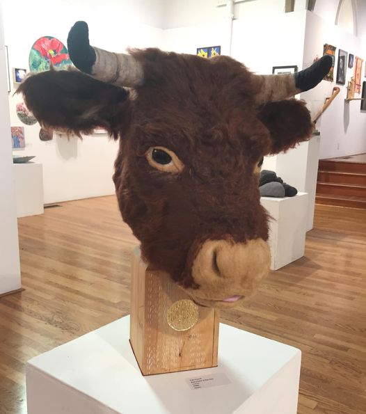 Here she is complete with a pink tongue sticking out. The stand is cedar with a round of gold leaf. Cow is 94% Oregon wool, 4.5% wool from Italy, 1% foam, 0.5% wire. The Italian wool/fur is so amazing! She turned out pretty close to what I envisioned. Working so large has been quite a challenge and I’ve learned so much for the next project (starting very soon!).