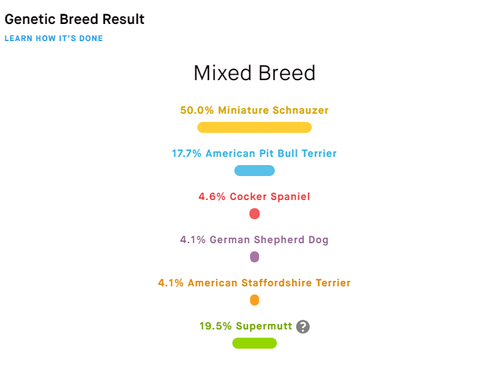 I finally turned in Hazel and Moby’s cheek swabs to the Embark company. After several weeks of waiting the results are in and a total surprise! First dog is Hazel: