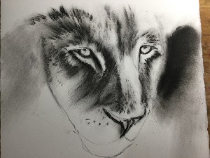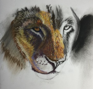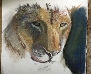 The lioness model is from a photo I took one morning in Kenya. The group of sisters were snoozing under cover of a bunch of shrubby trees. Such a beautiful bunch of cats! I think there was a family of Black Backed Jackals skirting round the lioness group, looking for food scraps. This drawing is my first attempt with pastels and hopefully the image will be mounted on an 8″x 8″ block for a fundraiser at The Arts Center of Corvallis. Hopefully….. I still have plenty of time to screw it up.