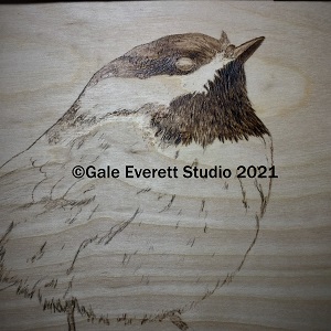 Of course this is just a giant experiment for my brain to jump on. What if I burn wood? What happens when I add colored pencils over the top? Does that add to the look? Do I get greater interest from it? Possibly! When this particular image is completed, do I experiment with the same chickadee image in pastels? Cut paper? Ceramics? Felt? Life is one giant experiment in the making. I’m just swirling around on different eddies of artistic delight. Maybe someday I’ll settle down on one thing.