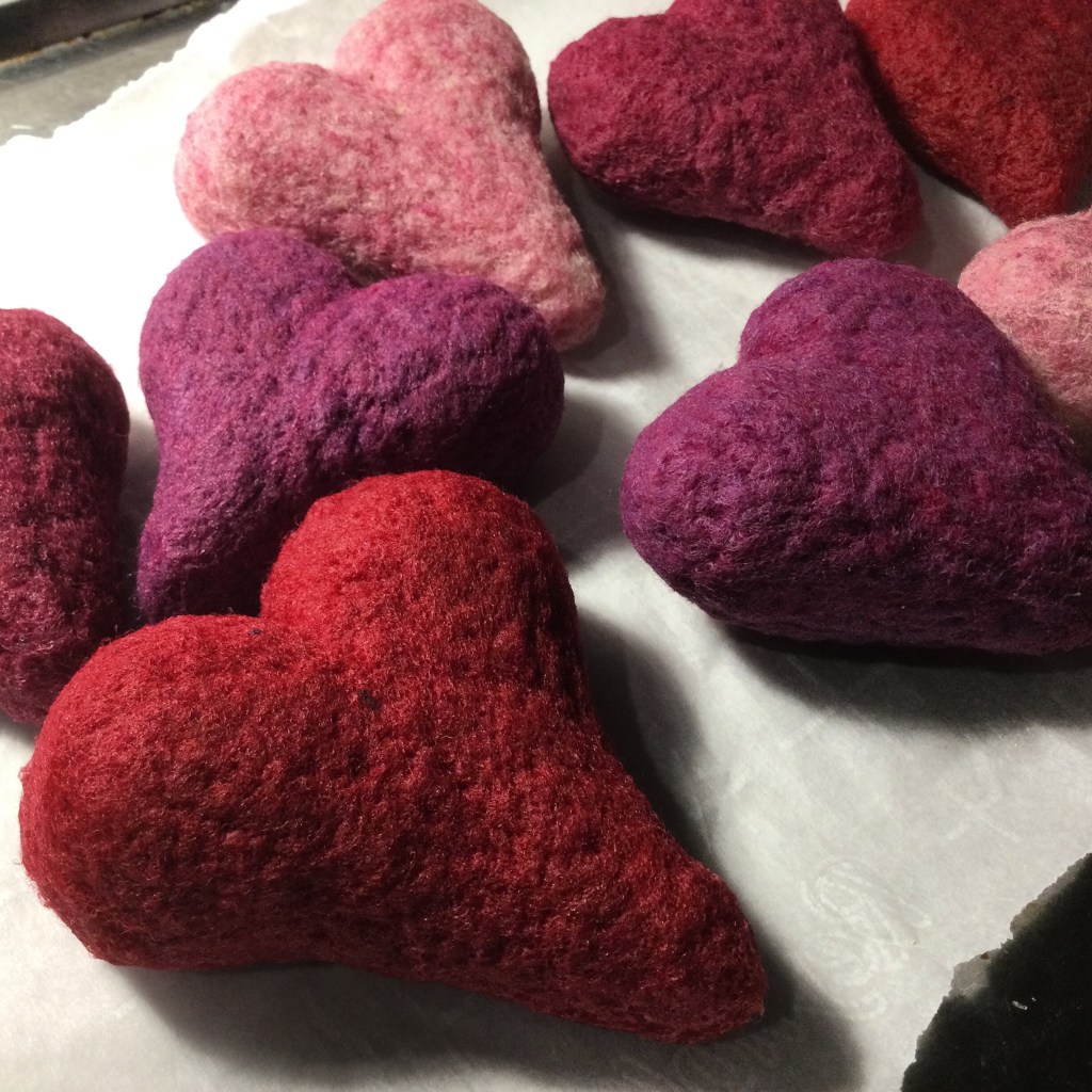 Happy Lunar New Year! I’ve been working on numerous projects lately, mainly with wool, and slowly selling off the remaining chickadee cards from our holiday print run. Taxes are in the works because I’m awful about keeping track of expenses/time invested into projects. The Vintage Roost, a local seasonal venue, is currently hosting a few items of mine during their Valentines Open House. Additional stock was produced for the event and it’s actually starting to push me into thinking about other ways to use wool. Their clients seem to be interested in quite a wide assortment of finished goods. This weekend I started to work on wool as jewelry. If you look at Pinterest, there’s an overflow of ideas (yes, I do pop on to look at colors and textures in a variety of things from printmaking, ceramics, and textiles). So I’m slowly learning how to make small things and play with my existing bead stash.