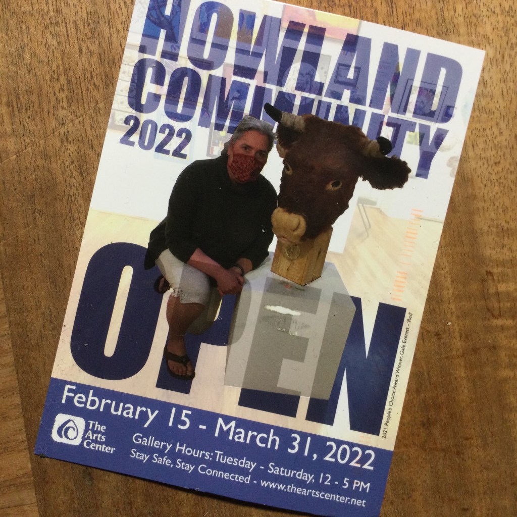 Another thing that surfaced last week was the print advertisement for the upcoming show at our local arts center. I happened to win the 2021 “Peoples Choice Award” with the giant felted wool cow head. The winning art is featured on the show advertisement the following year.