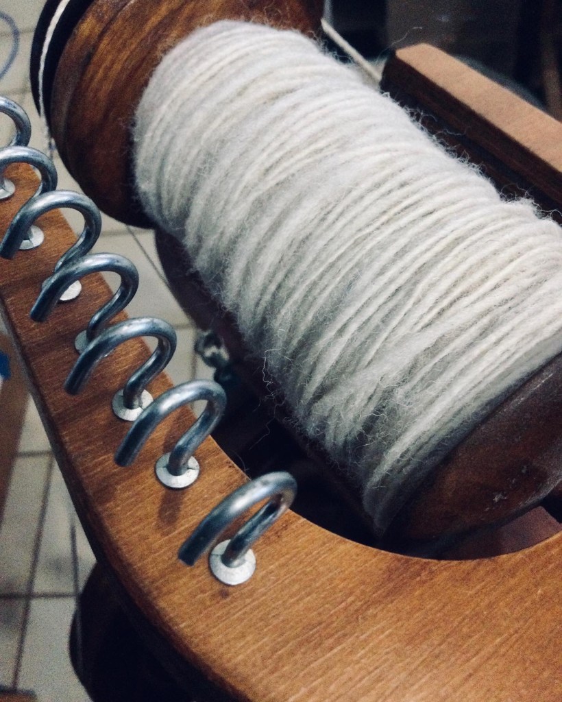 Creating single ply with North County Chevoit cross wool.