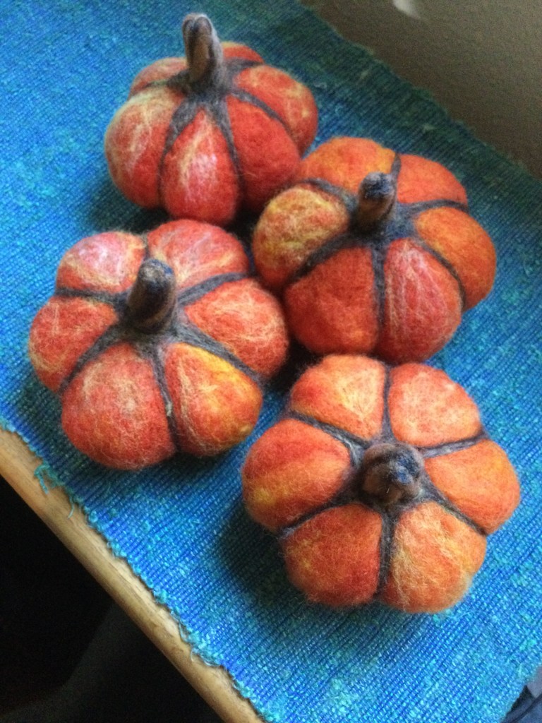 Woolly Pumpkins 🎃 created from hand dyed wool.