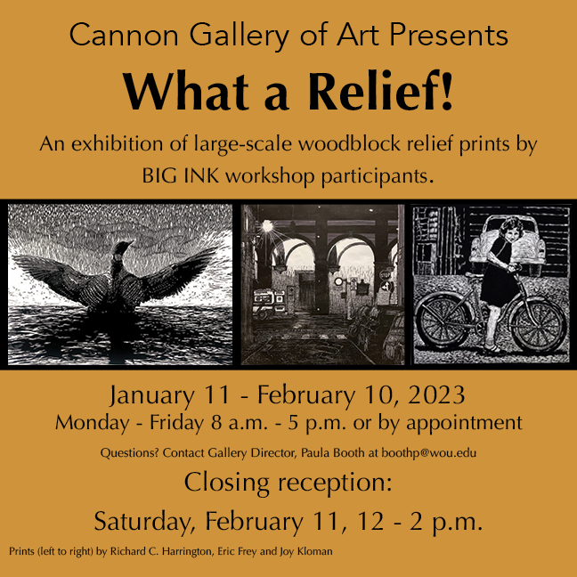 I can’t even believe that two other shows have come and gone: Philomath Open Studio Tour had artwork for 2+ months at the Benton County Museum in Philomath. I was also part of the Big Ink print show at Western Oregon University in January/February. It was great to see prints from our weekend in 2022, plus previous year Big Ink participants.