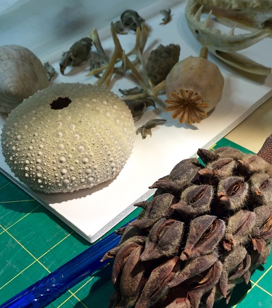 I’ve finally cleared the desk in order to start working on Cathe’s book. The subject is “Collections” and I certainly have quite a few. Last week was spent sorting and tossing (donating) some of those collections in an attempt to clear out the garage. In the animal world, there is a rodent called a Wood Rat (aka Pack Rat). It loves collecting shiny things, things that are different, eye catching bits and bobs. They take these special items and stash them in their ever growing home. Yes, they do add on to their home to accommodate more stuff. They’re the mini-hoarders of the animal world! Sometimes I feel our home is a pack rat’s nest. I have loads of my old things, art in storage, plants, animals, magazines, papers and so much more. It’s been 20 years since we moved into this home and we’ve not had a good clean-out in all that time. The studio could also use a good cleansing, but sometimes it’s hard to part with materials. “Oh, I’ll need that for project X, when I get around to it!” Way too easy to put things in bins and stack them on another shelf. Clearing out my parents home after their death made me realize how much we hold on to. Yes, some of the items did come to my home, but a huge amount went to different charities. Now, I’ve been making a concerted effort to clear out our own items (or part with more of theirs) as I work through everything. I think it is slowly paying off with actually regaining workspace in the garage!